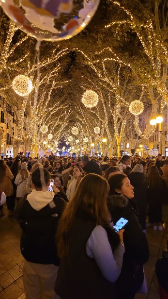 Las calles del centro de Ciutat se han convertido en un hervidero de ciudadanos deseosos de vivir un año más el esperado espectáculo del encendido de luces de Navidad en Palma. Más de 400 kilómetros de guirnalda y 3.026 montajes luminosos adornan desde esta noche los árboles y calles del municipio hasta después de Sant Sebastià.
